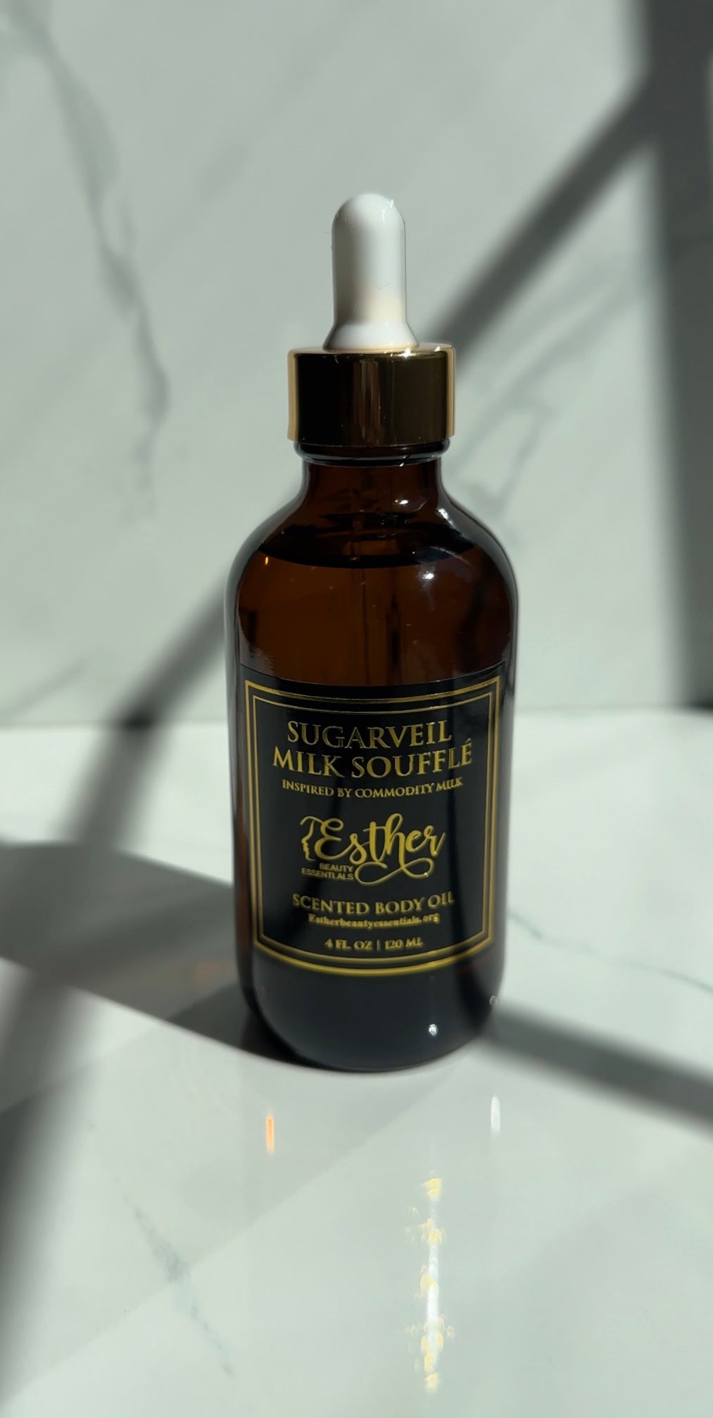 Inspired by Commodity Milk, Sugarveil Milk Soufflé body oil is a luxurious veil of softness. This body oil opens with the cool, creamy embrace of chilled milk, swirled with airy marshmallow for a touch of sweetness. The warmth of polished mahogany drapes the blend in quiet sophistication, while the golden richness of tonka bean deepens its allure. Finally, a whisper of white musk lingers on the skin—sensual, clean, and irresistibly intimate.